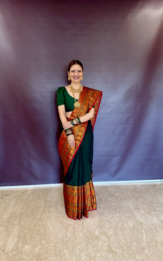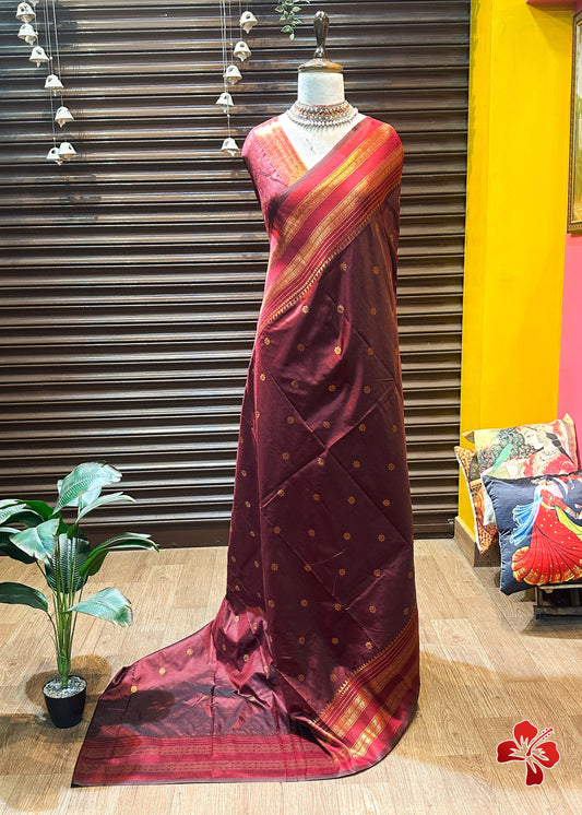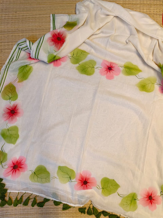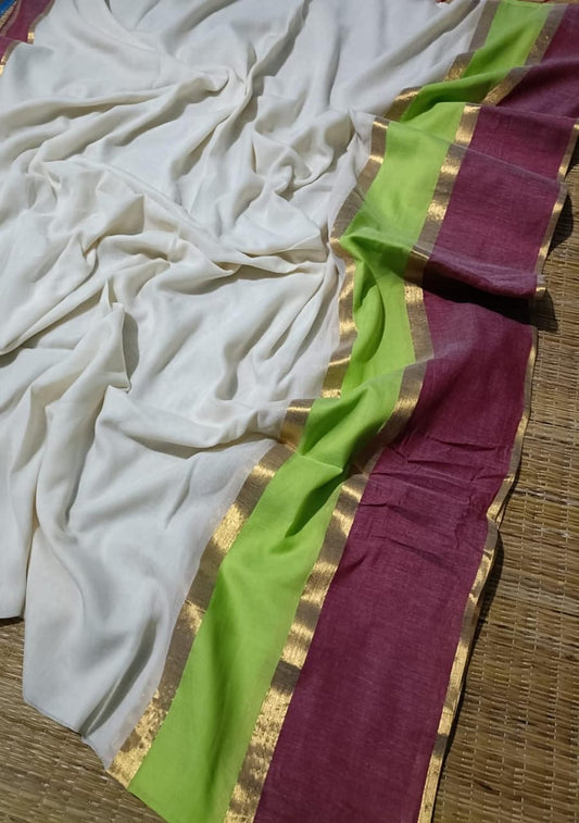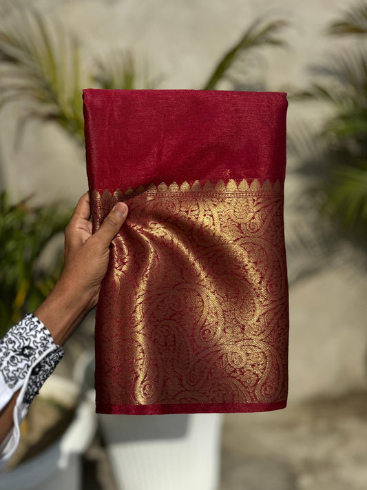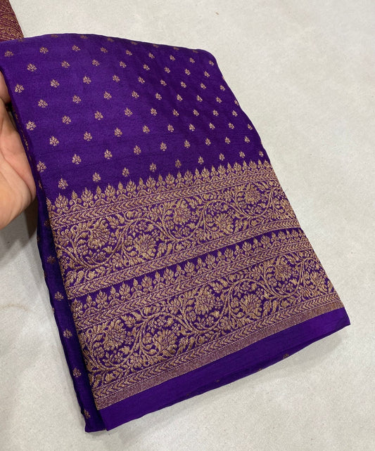Pure handloom crepe chiffon saree with Banarasi weavings - big border
