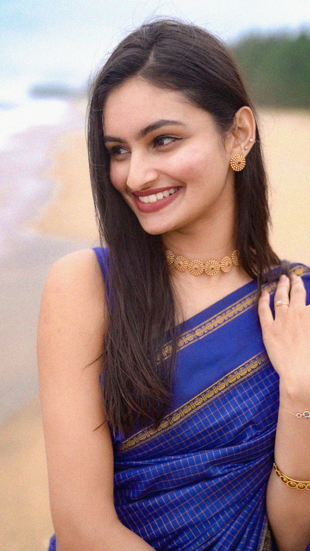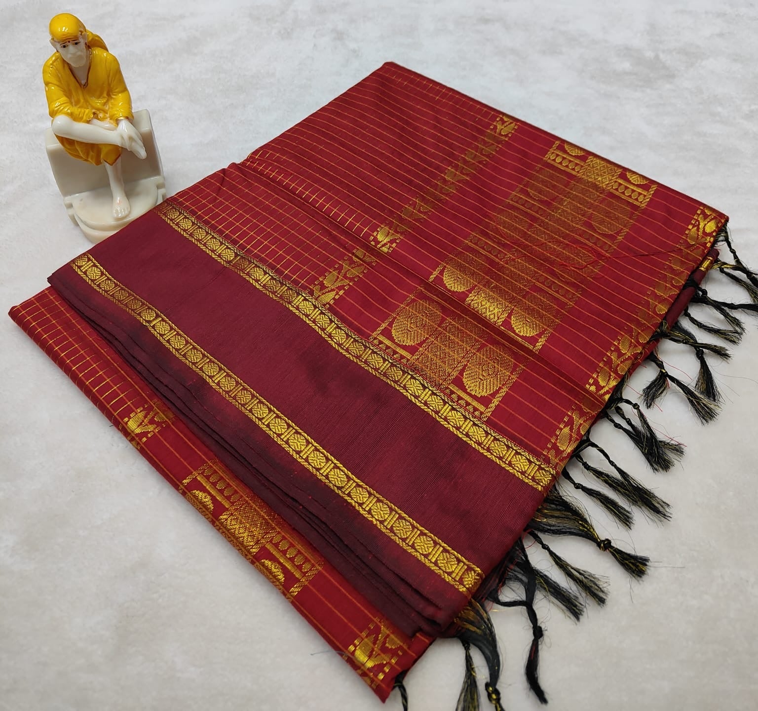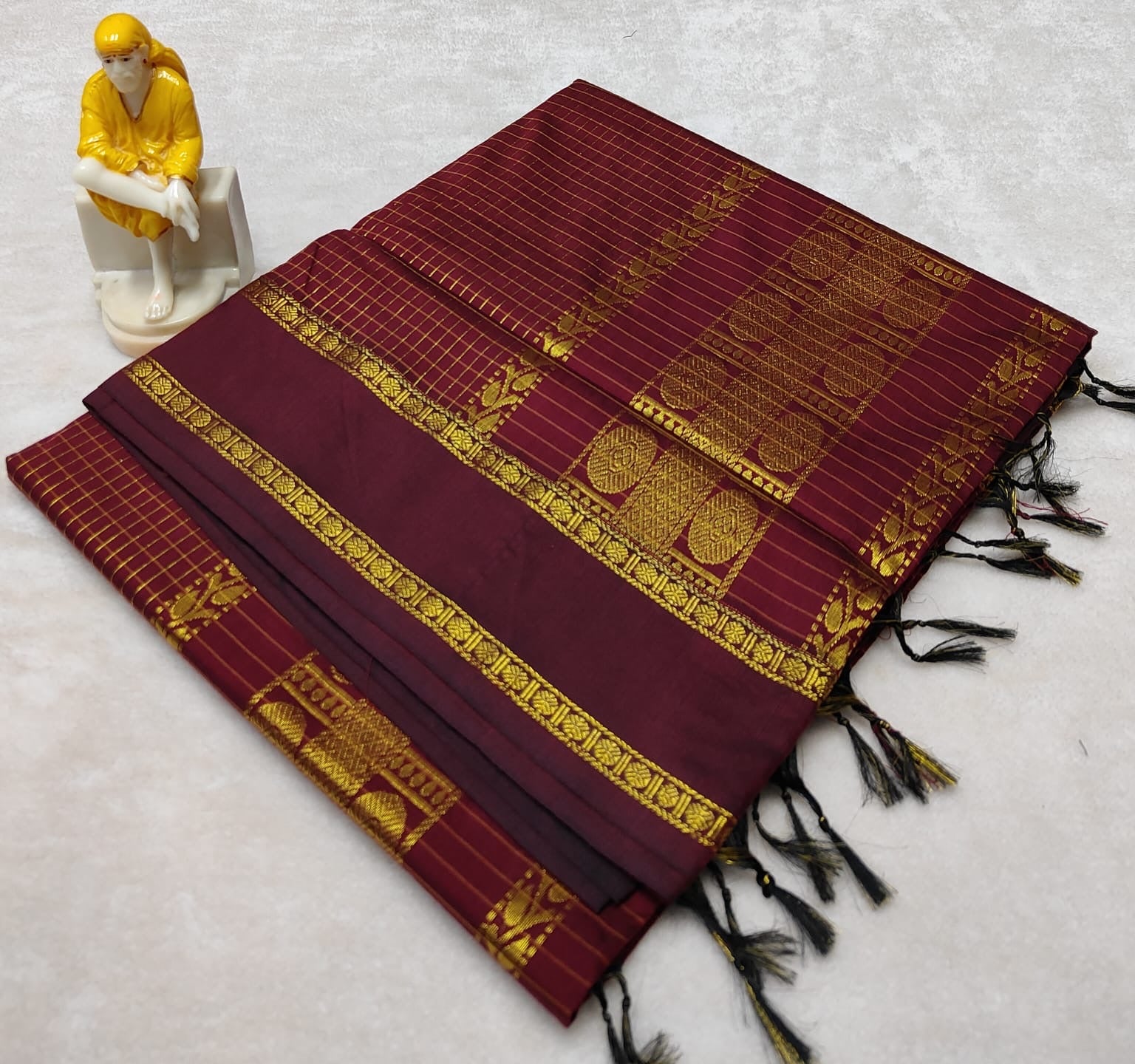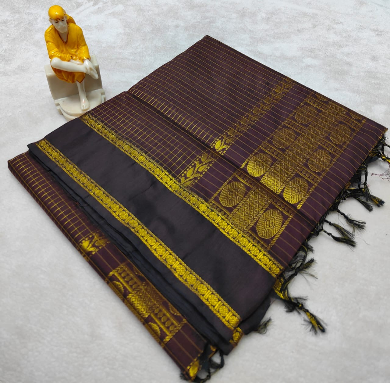 Arani silk cotton saree with checks and rudraksham border.. and running blouse piece