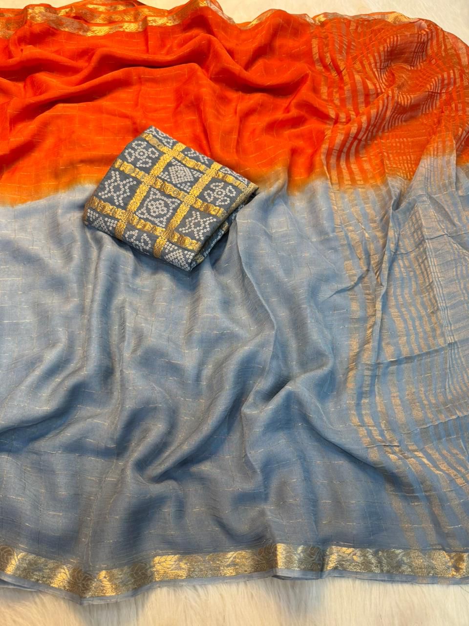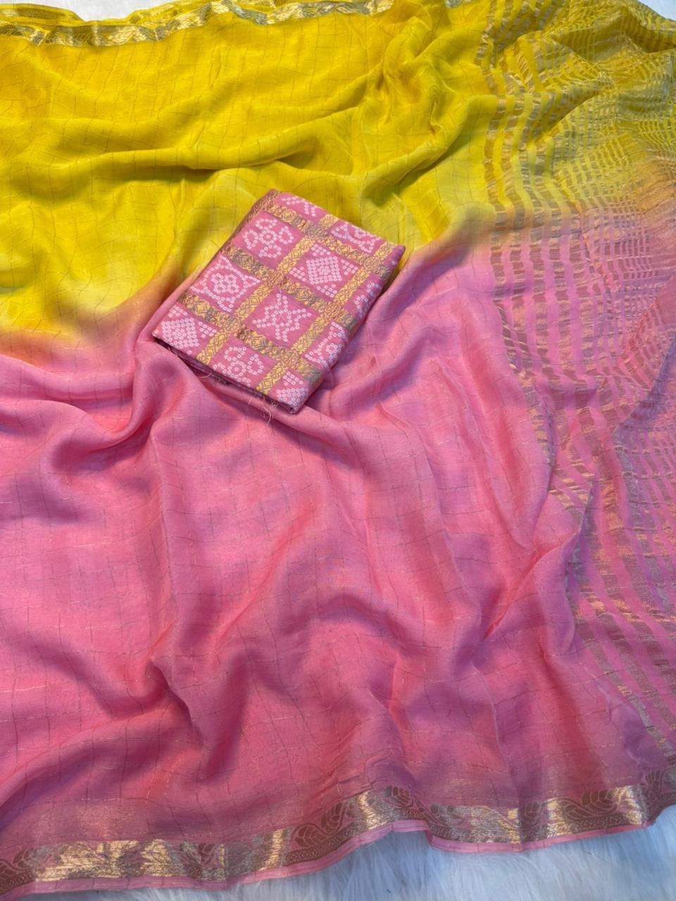 Viscose Georgette Saree With heavy bandhani Viscose Blouse