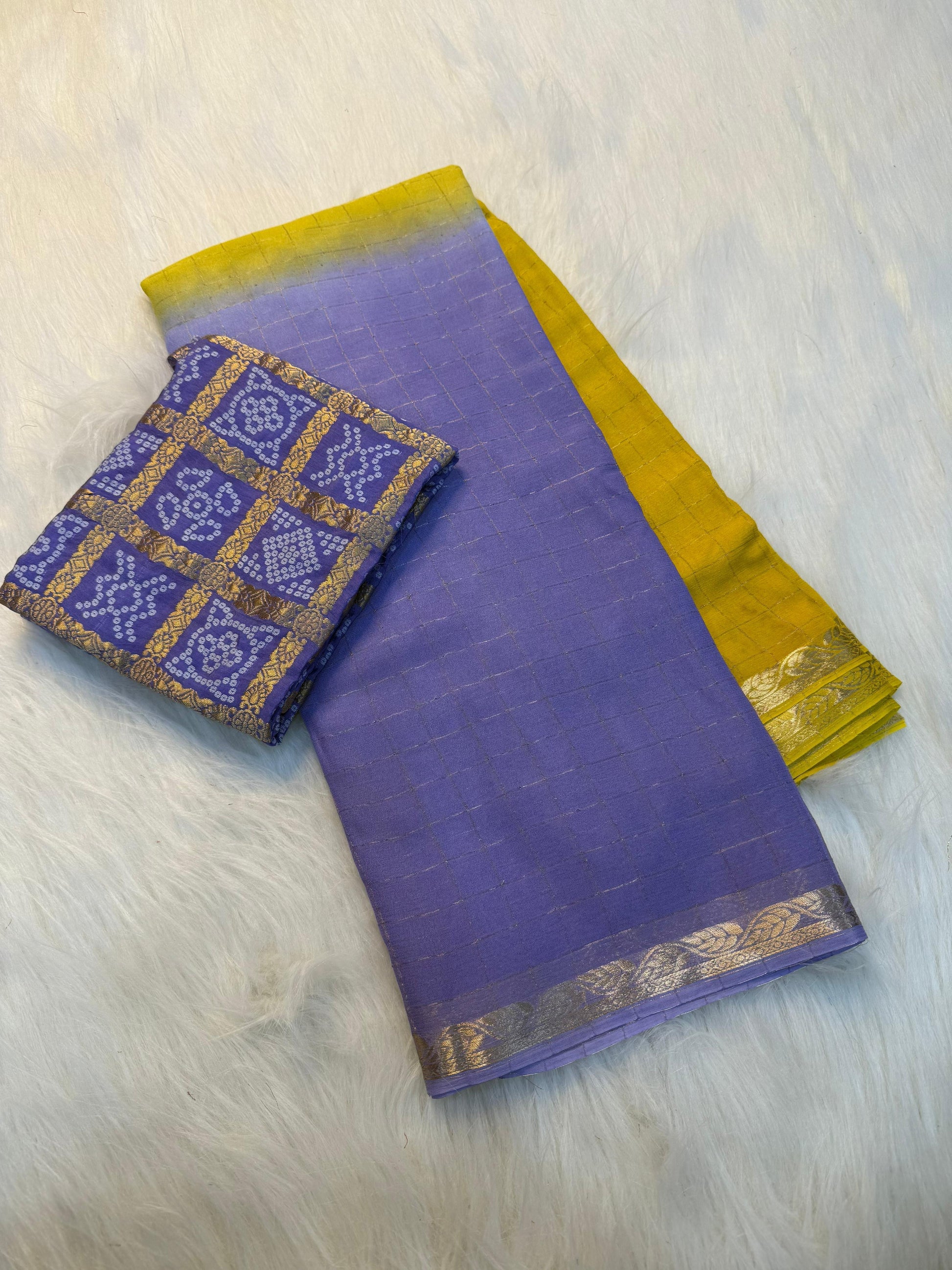 Beautiful ombre shaded viscous georgette check saree with bandhini blouse