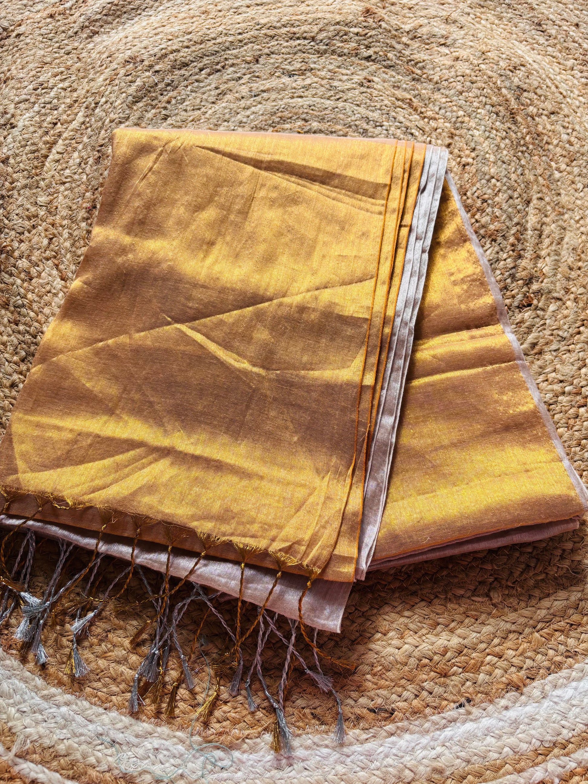 Mul tissue Raga saree - Gold and Silver